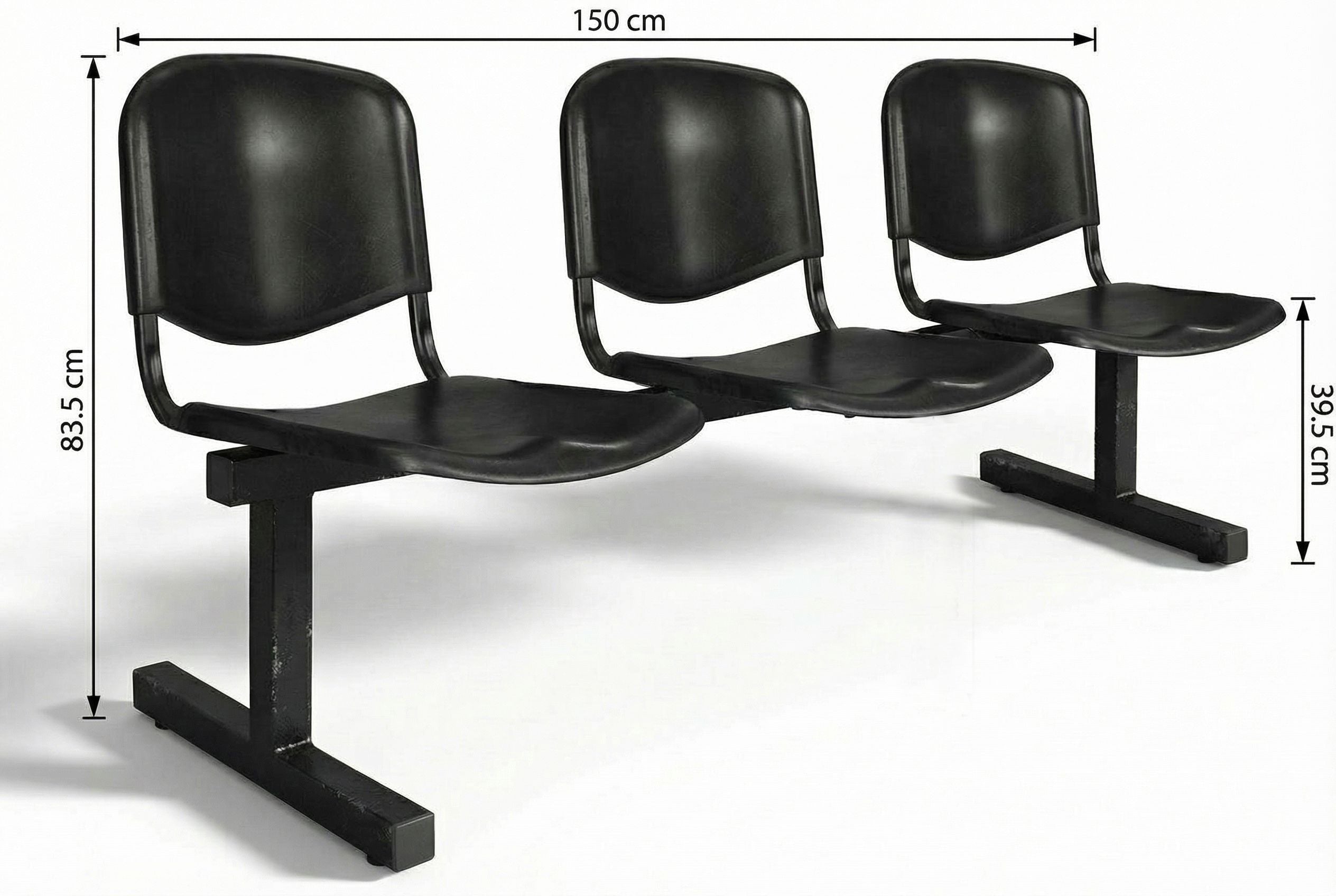 Medidas: Frente: 150 cm, Altura total: 83.5 cm, Altura del piso al asiento: 39.5 cm.
